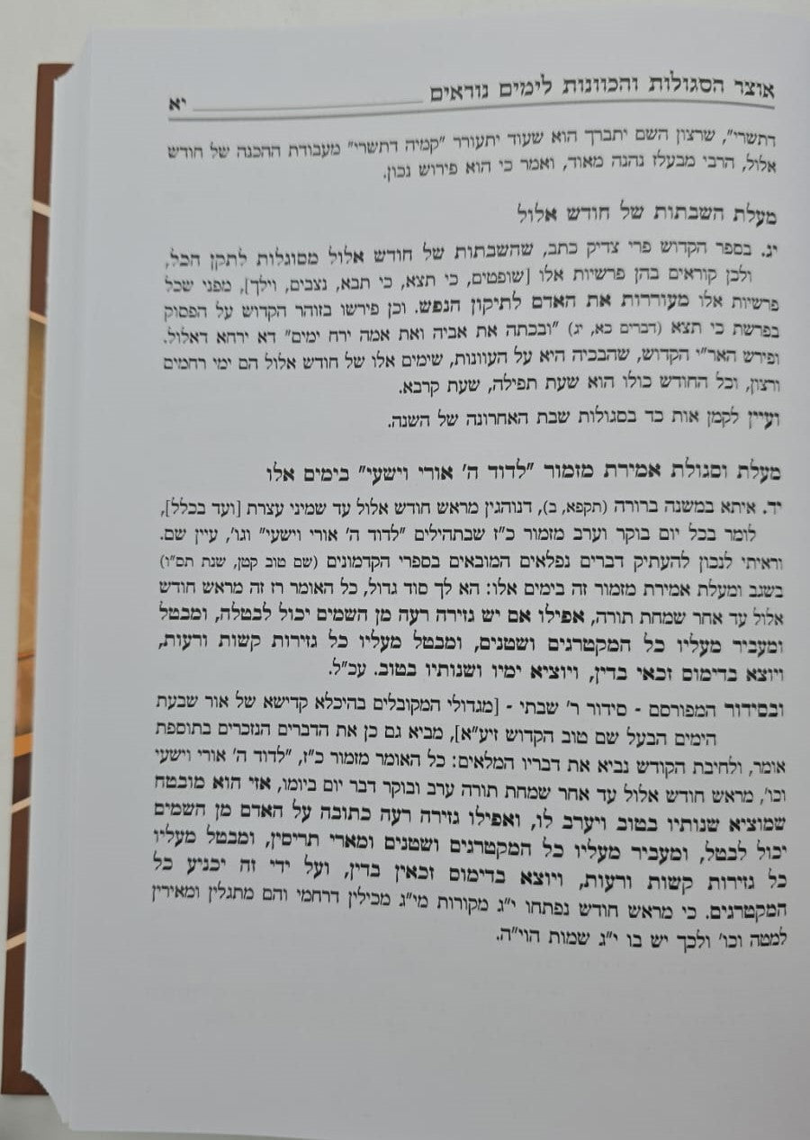 לגבי אוצר הסגולות והכוונות לימים נוראים / אלול תשרי