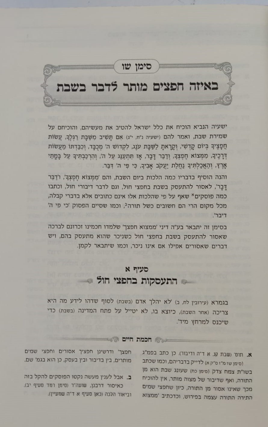 דברי השו"ע ונושאי כליו עם חידושי דינים מהפוסקים האחרונים והמנהג הנהוג עם מקורות וביאורים לכל הלכה.