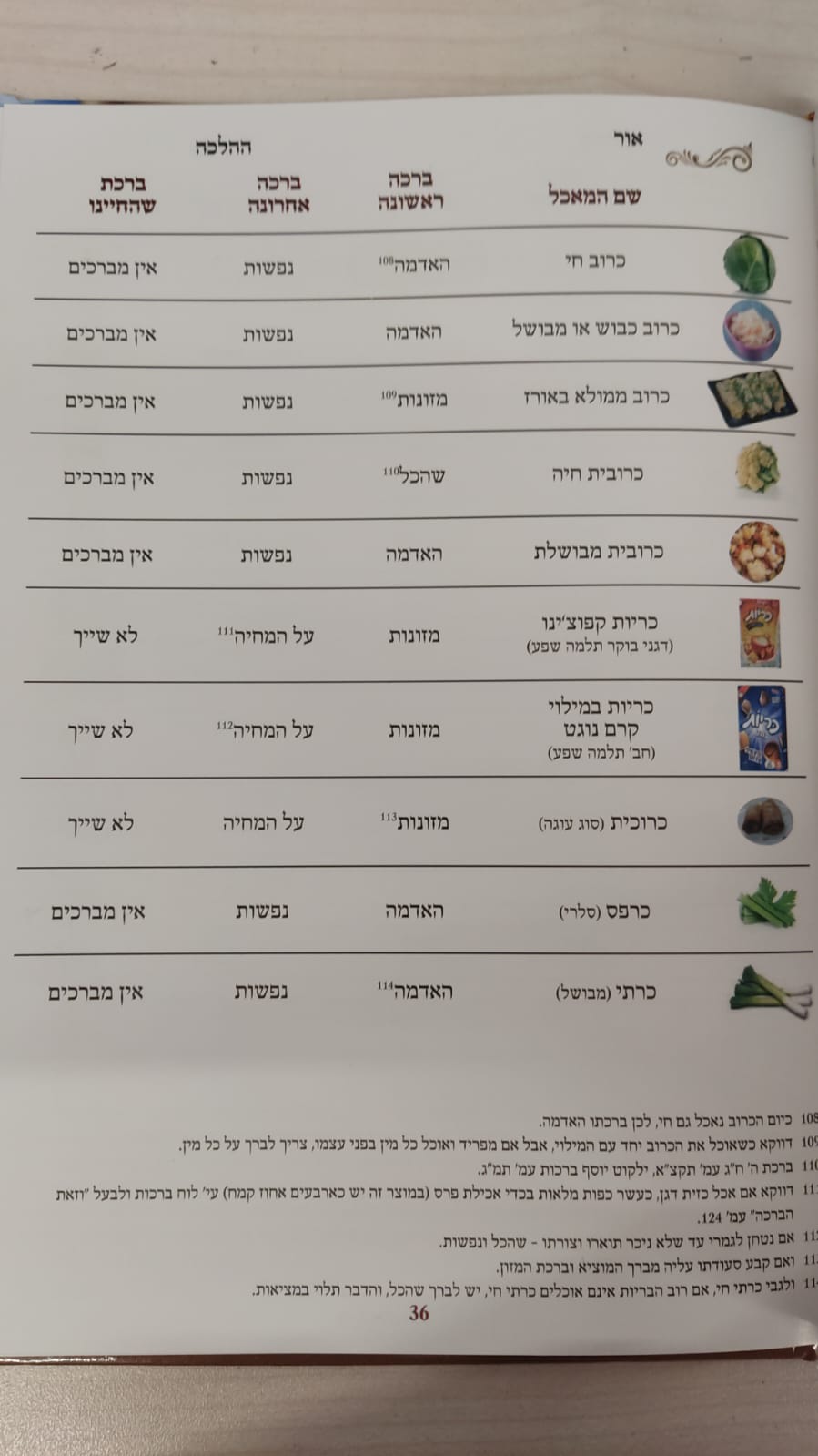 קובץ לוח ברכות ראשונות ואחרונות ושהחיינו בתוספת תמונות של מאות מאכלים וברכותיהם מסודרים לפי א' ב'