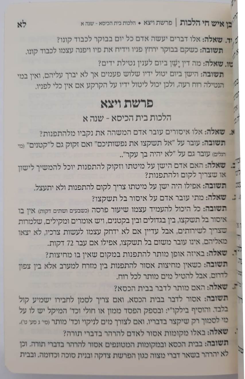 לגבי בן איש חי הלכות – שאלות ותשובות / פורמט קטן כריכה רכה