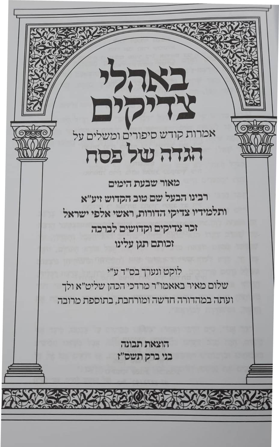 הגדה של פסח - באהלי צדיקים / תלמידי הבעש"ט וגדולי החסידות