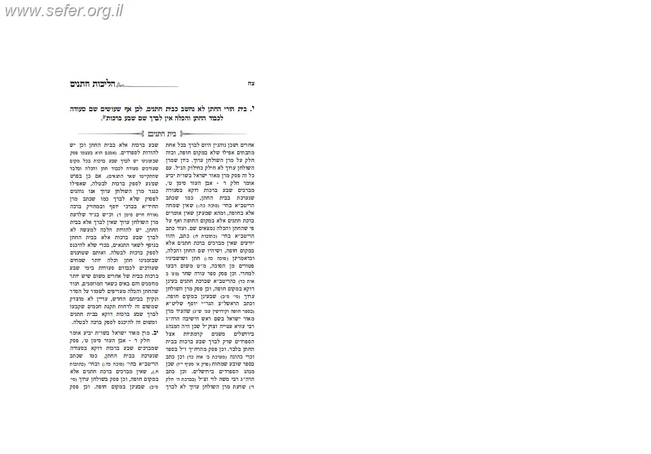 לגבי הליכות חתנים - הלכות חופה ונישואין / ע"פ פסקי מרן הרב עובדיה זצוק"ל