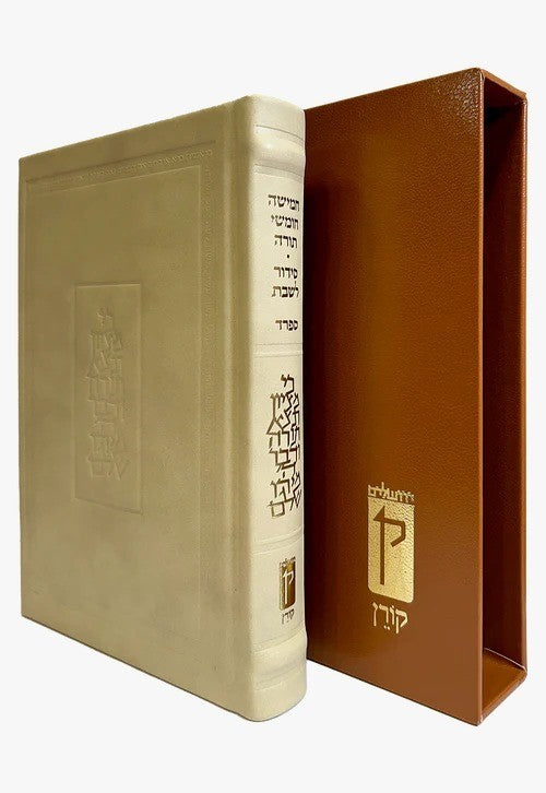 חומש קורן עם תפילות שבת - נוסח ספרד עור קרם / מהדורה אישית