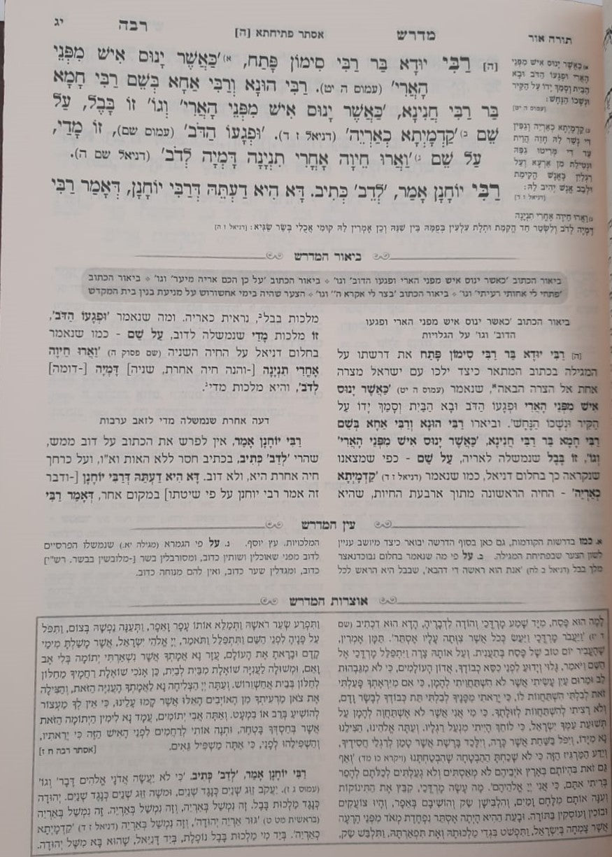 גודל המוצר: 26x17 ס"מ. כרך זה מצטרף לסט מדרש רבה המבואר על התורה ומגילת אסתר שיצא לאור.