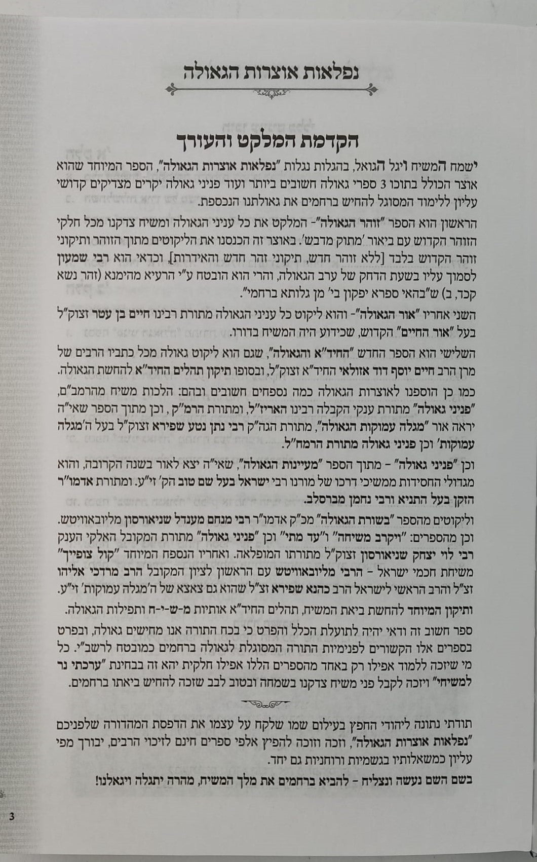 מתוך הספר "זוהר הגאולה"- כל עניני הגאולה בספר הזוהר הקדוש. "אור הגאולה" מתורתו של "אור החיים" הקדוש.