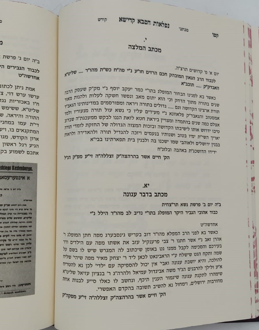 מכבוד קדושת אדונינו מורינו ורבינו, פאר הדור והדרו חסידא ופרישא, נהורא עילאה,