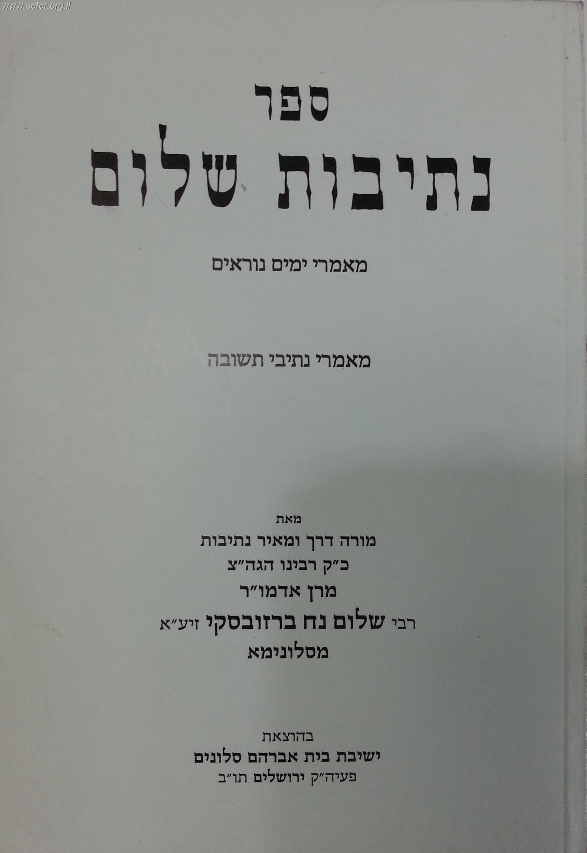 נתיבות שלום על ימים נוראים / נתיבות שלום ימים נוראים.