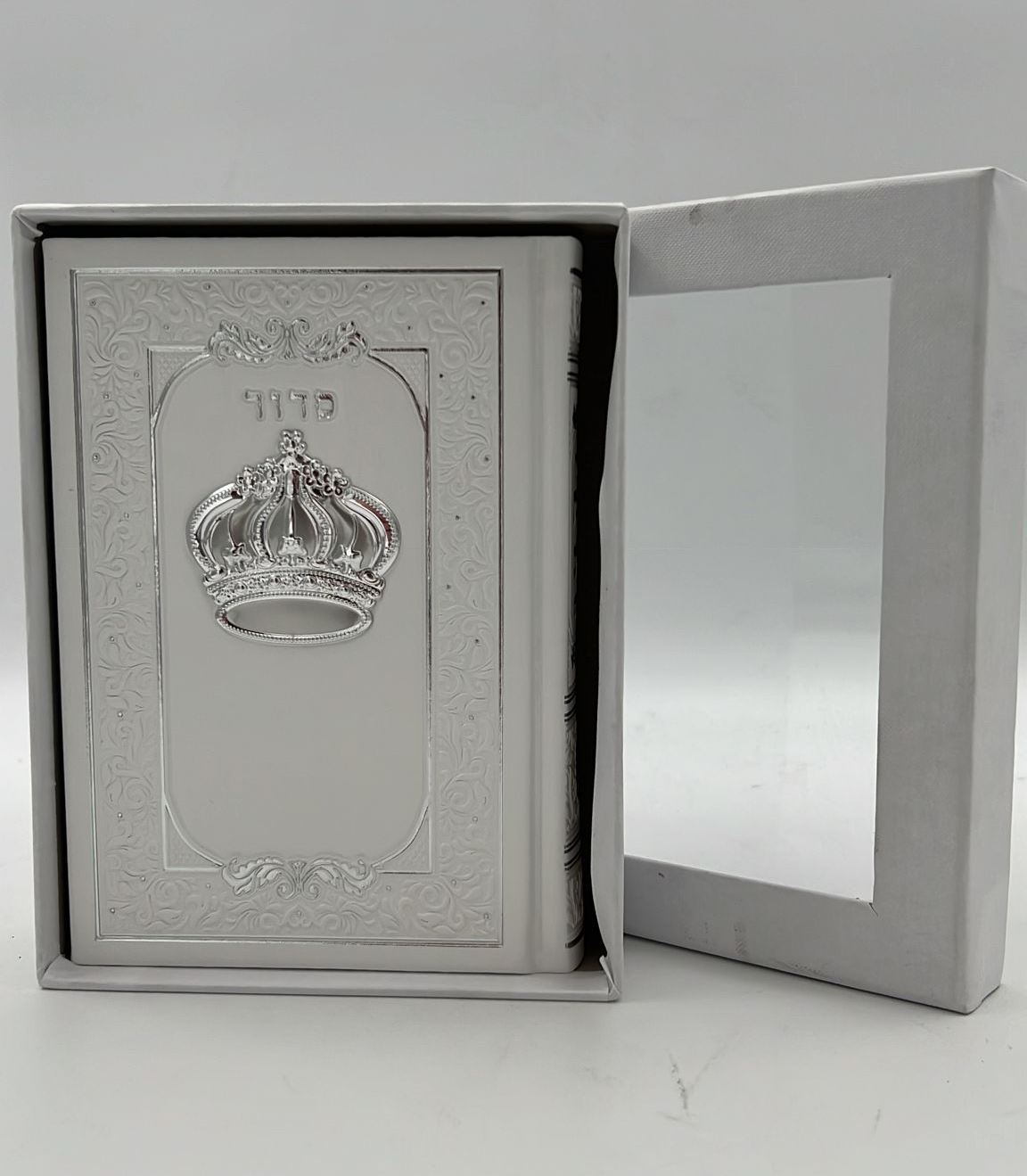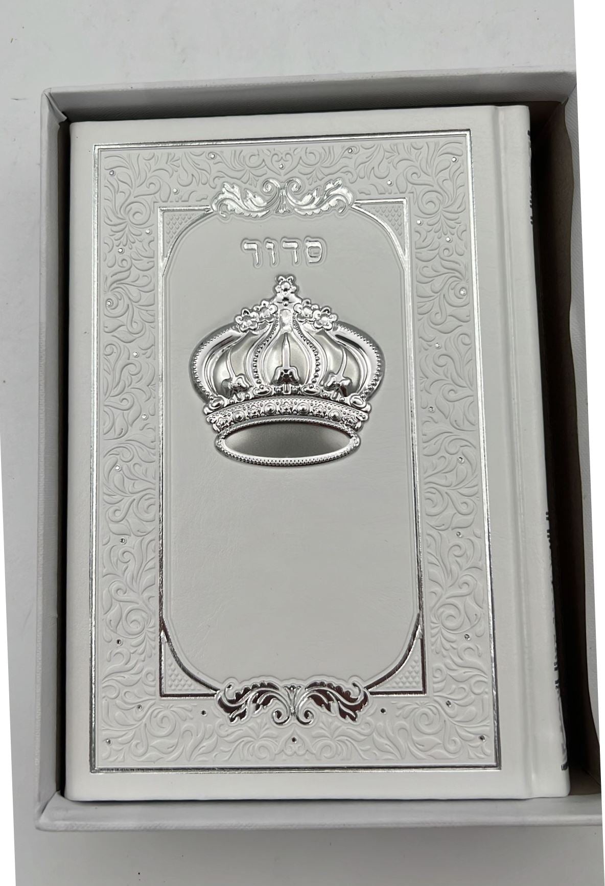 סידור כוונת הלב (PU) דמוי עור עם כתר כסף - צבע לבן עם קופסא / נוסח עדות המזרח