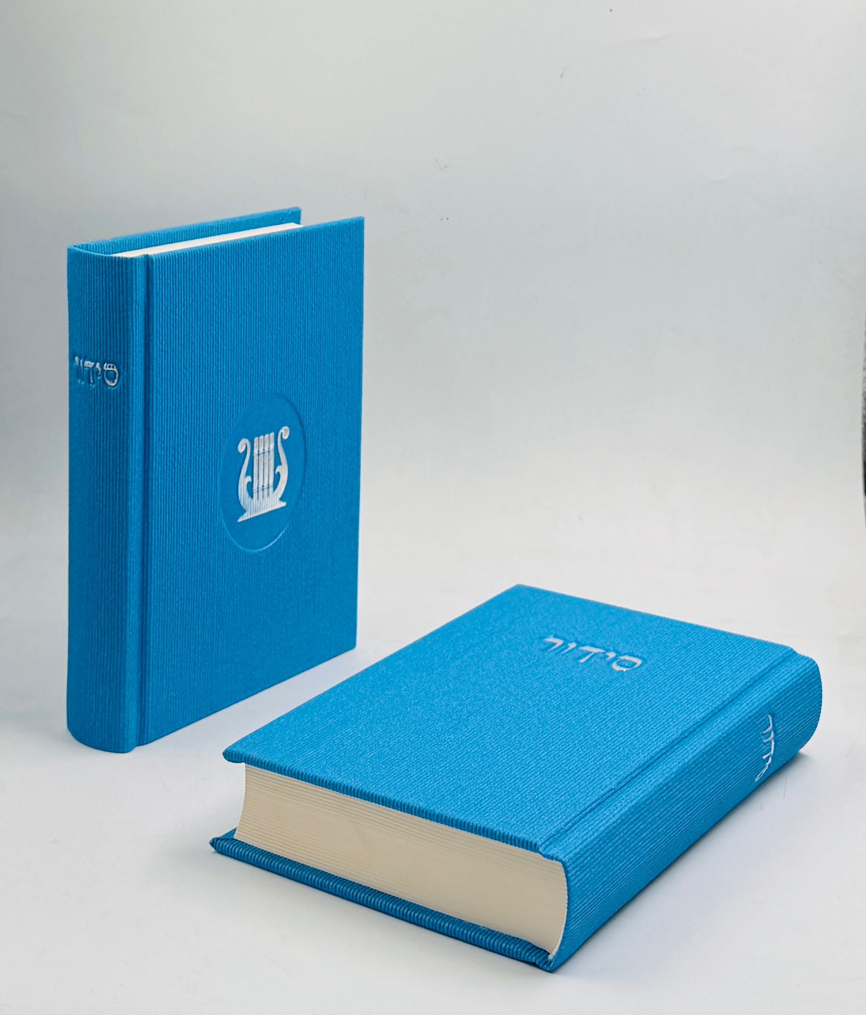 סידור מהודר בבד שזור - צבע תכלת כריכה קשה ע"מ / פורמט בינוני