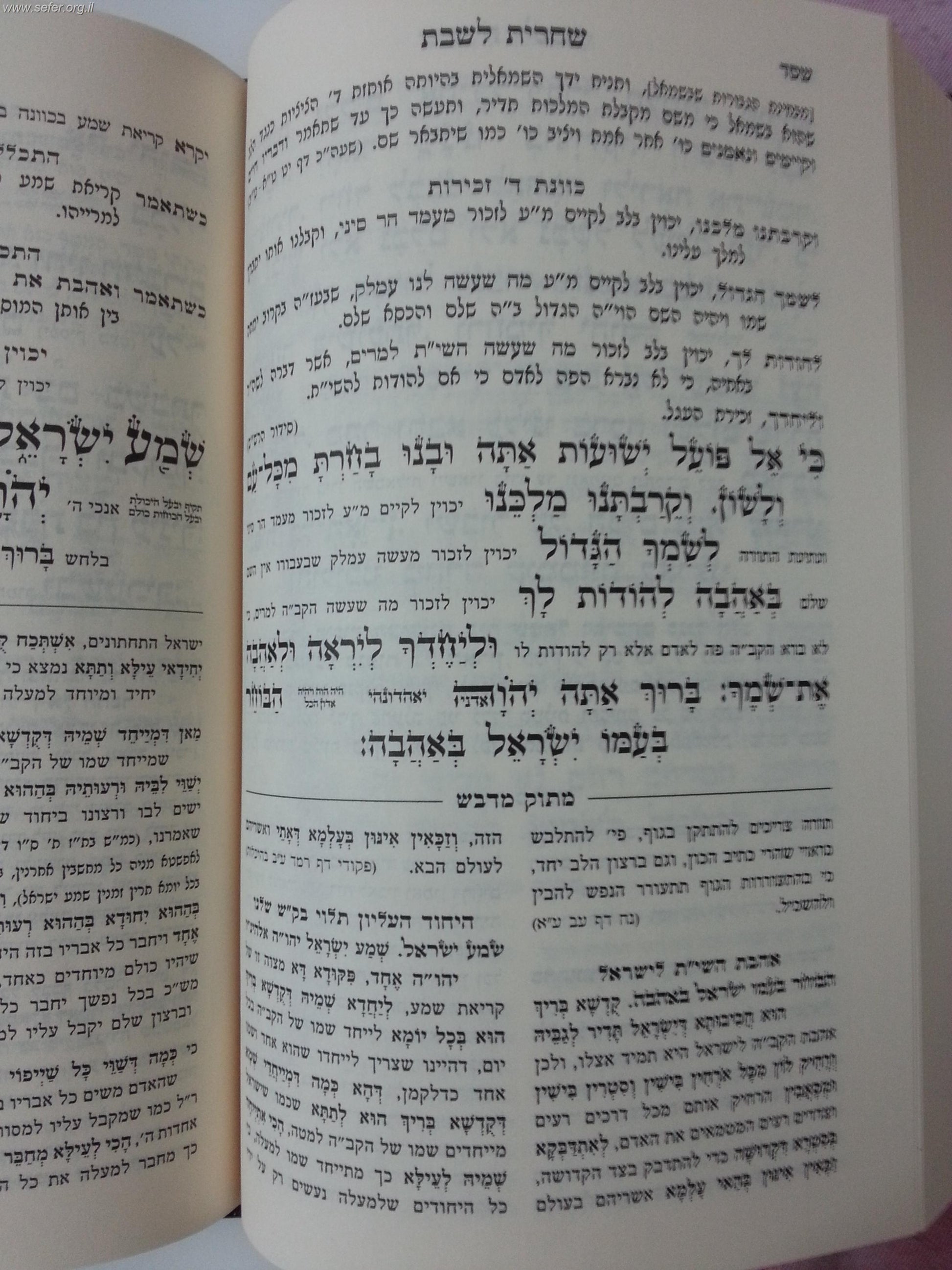 סידור מתוק מדבש לשבת - נוסח עדות המזרח
