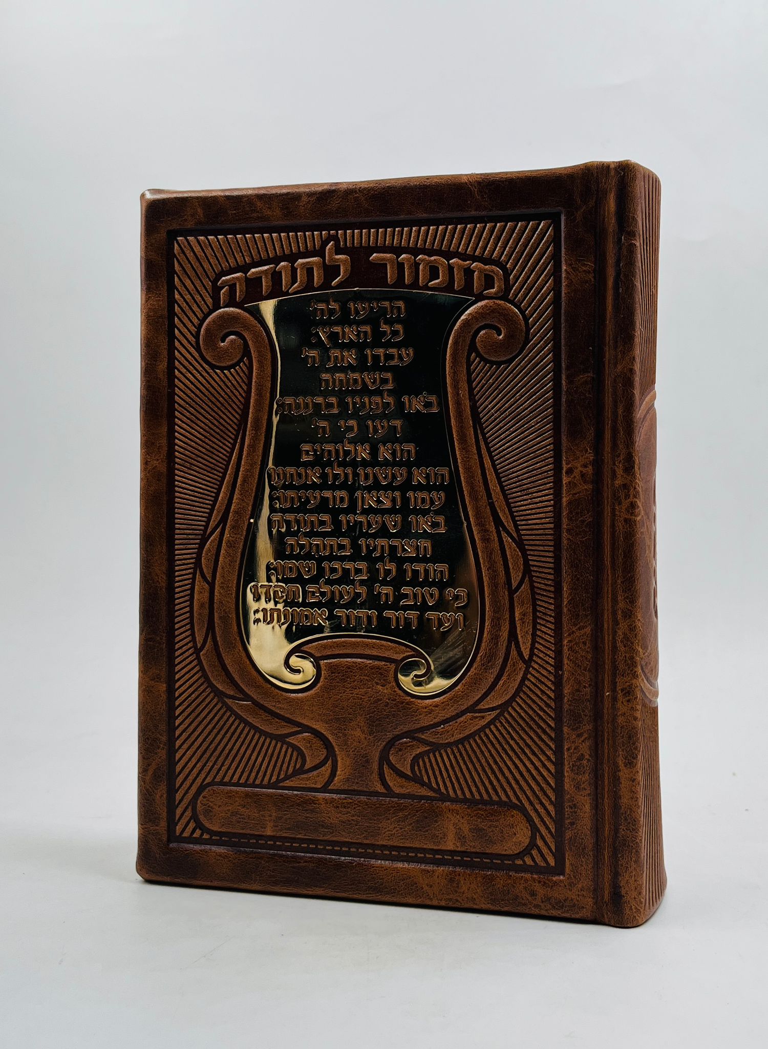 סידור עור עתיק פלקטה זהב 'מזמור לתודה' - נוסח ע"מ / צבע חום בהיר