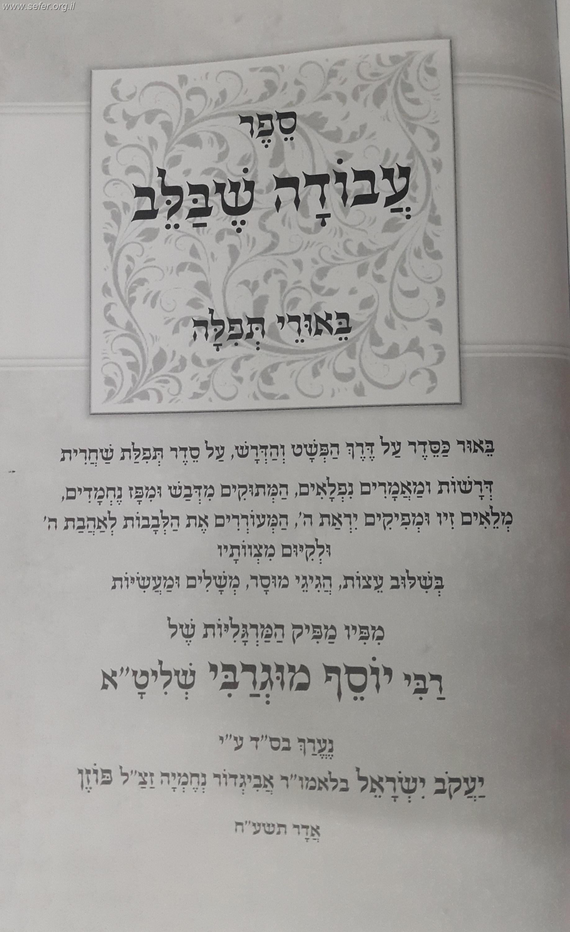 עבודה שבלב - ביאורים נפלאים על סדר התפילה / הרב יוסף מוגרבי.
