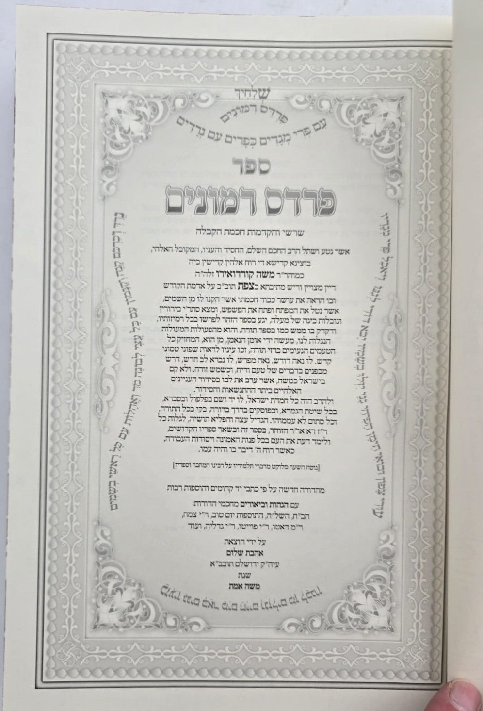 בשמחה רבה הננו לבשר לדורשי ה' על הופעת המהדורה הייחודית של הספר פרדס רמונים לרבינו הרמ"ק ז"ל