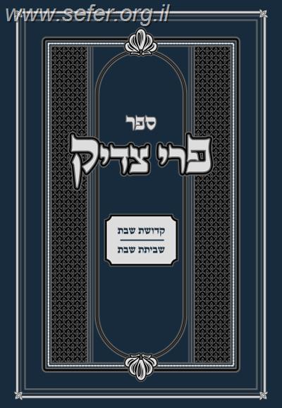 פרי צדיק - ענייני שבת / רבנו צדוק הכהן מלובלין זצ"ל
