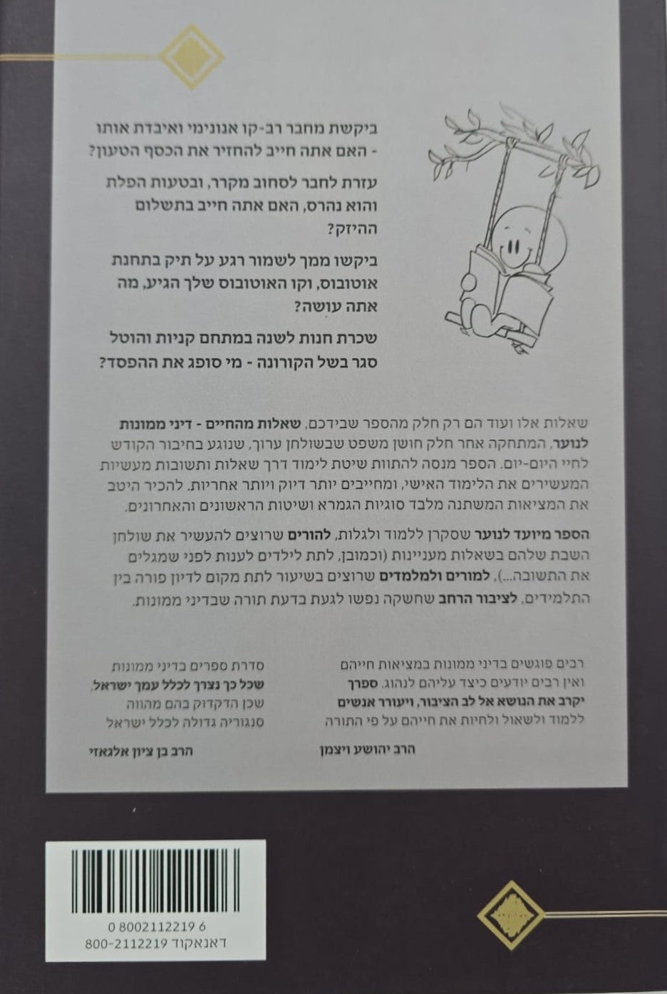 דיני ממונות הינם דינים שנתקלים בהם כל הזמן בחיי היום-יום, בין אם זה במציאה ברחוב, בשמירה על תיק של חבר,