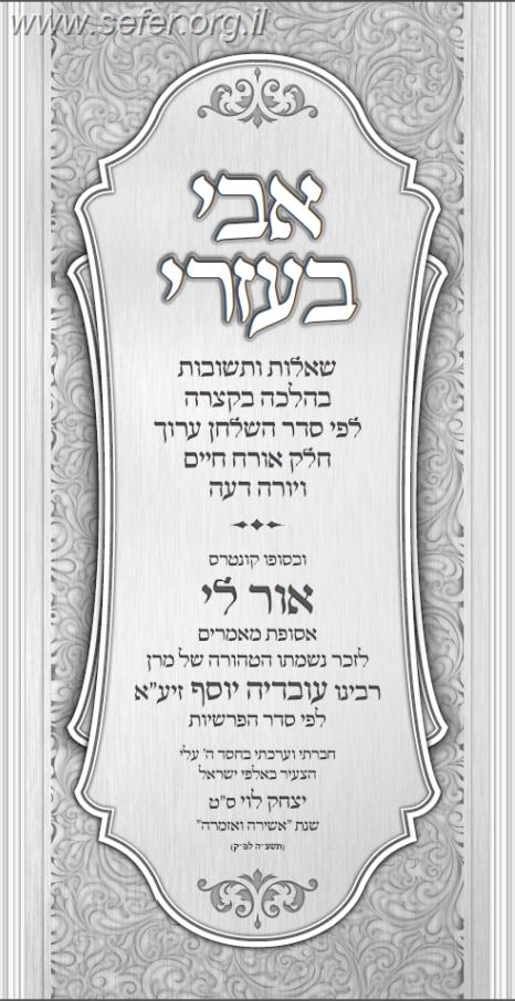 שו"ת אבי בעזרי - שו"ת קצר בהלכה / הרב יצחק לוי שליט"א
