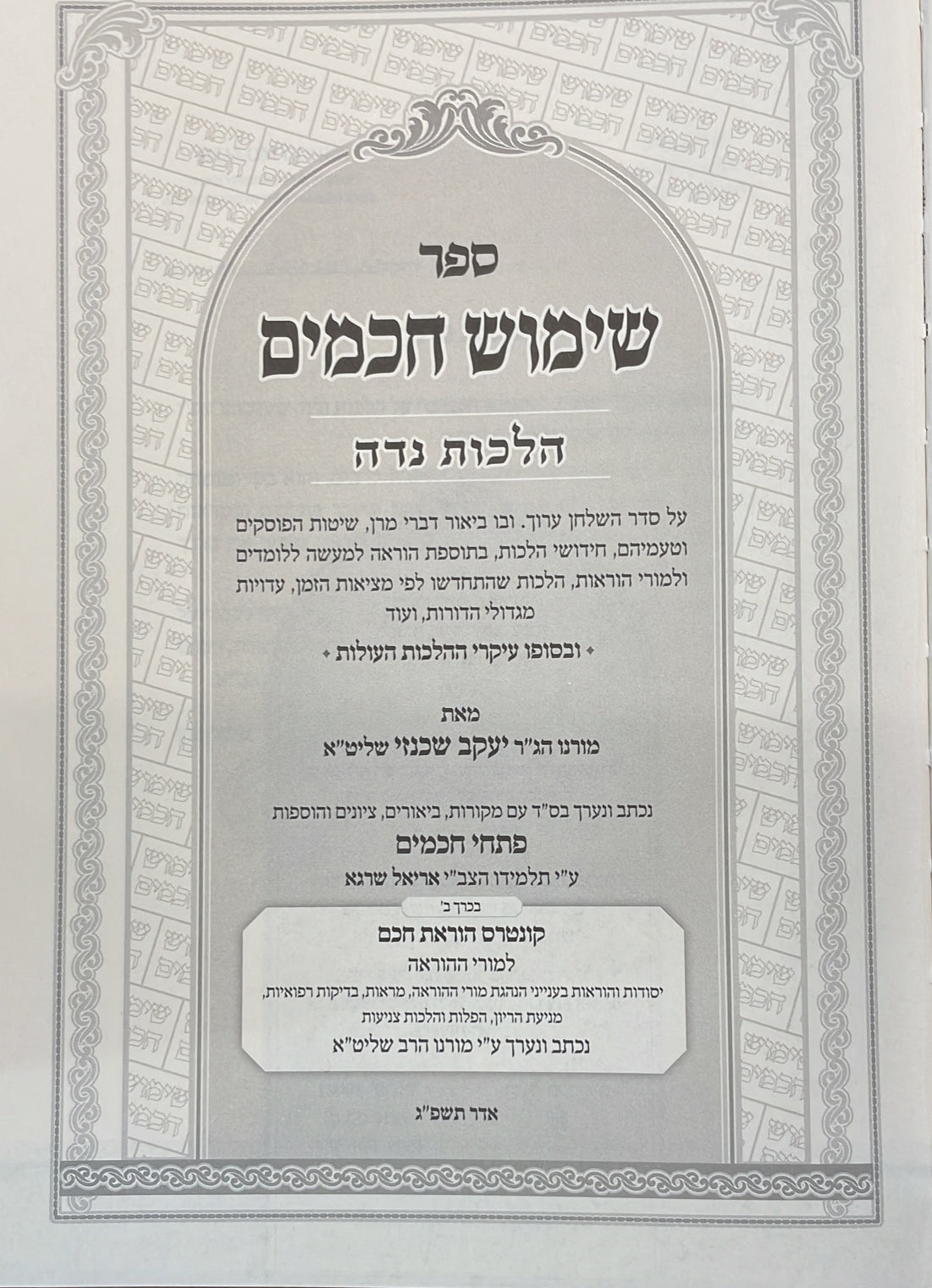 שימוש חכמים - הלכות נדה ב' כרכים / הרה"ג יעקב שכנזי שליט"א
