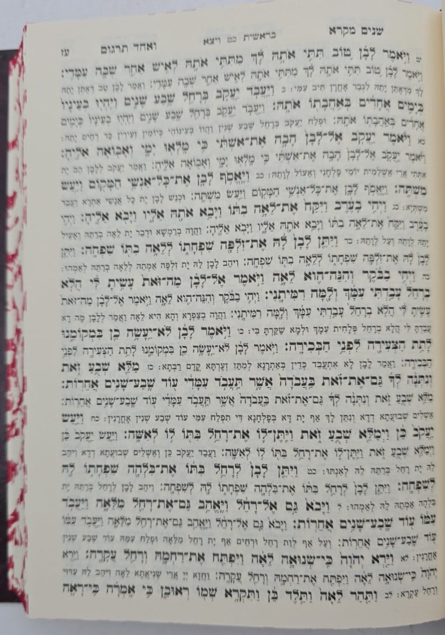 שניים מקרא ואחד תרגום בכרך אחד באותיות מאירות עיניים.