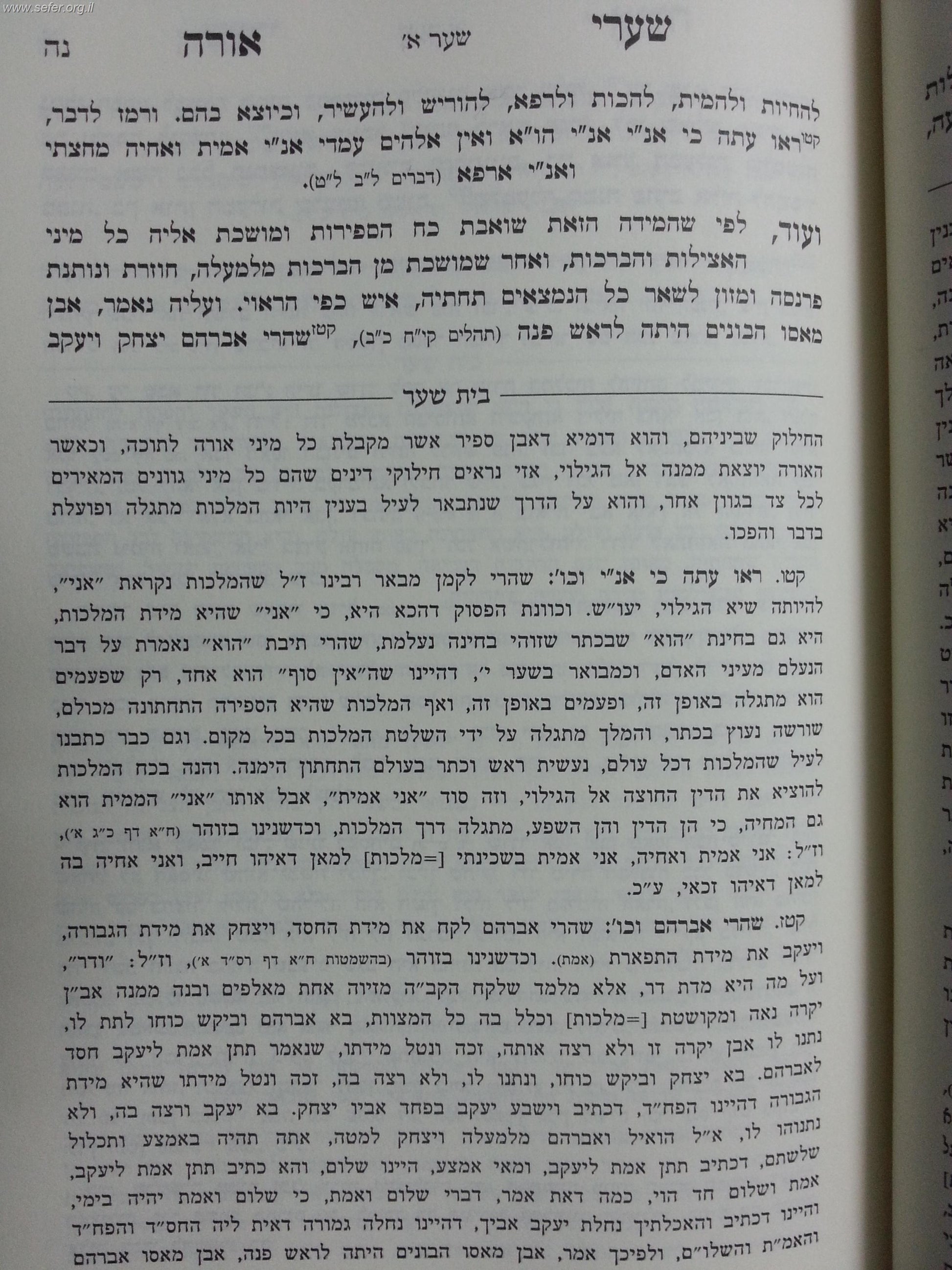 שערי אורה עם ביאור בית שער.