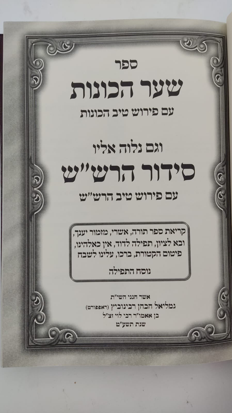 כולל גם את החלק טיב הרש"ש על סידור הרש"ש.