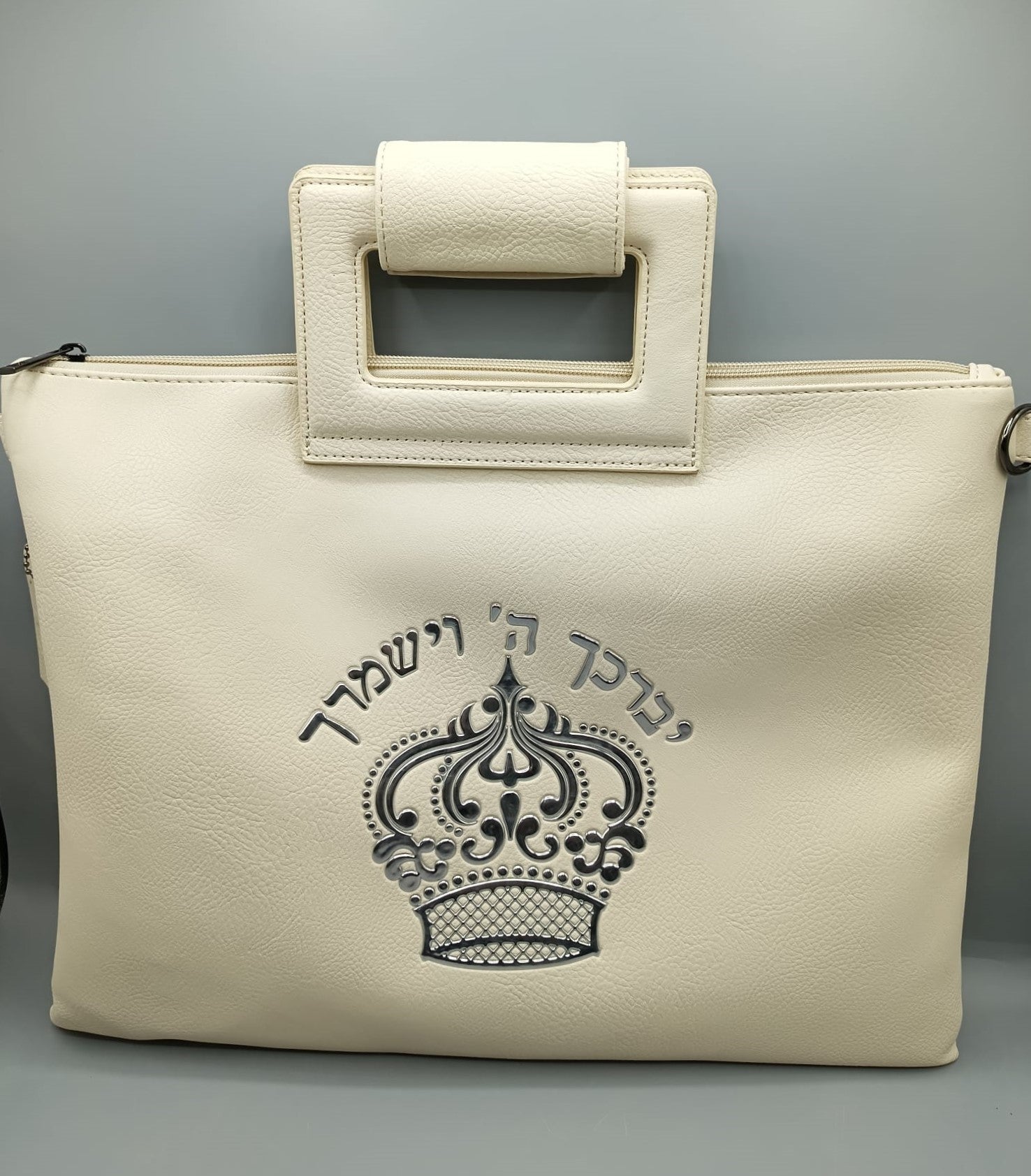 תיק טלית ותפילין - דמוי עור PU עם רצועה לנשיאה / צבע קרם